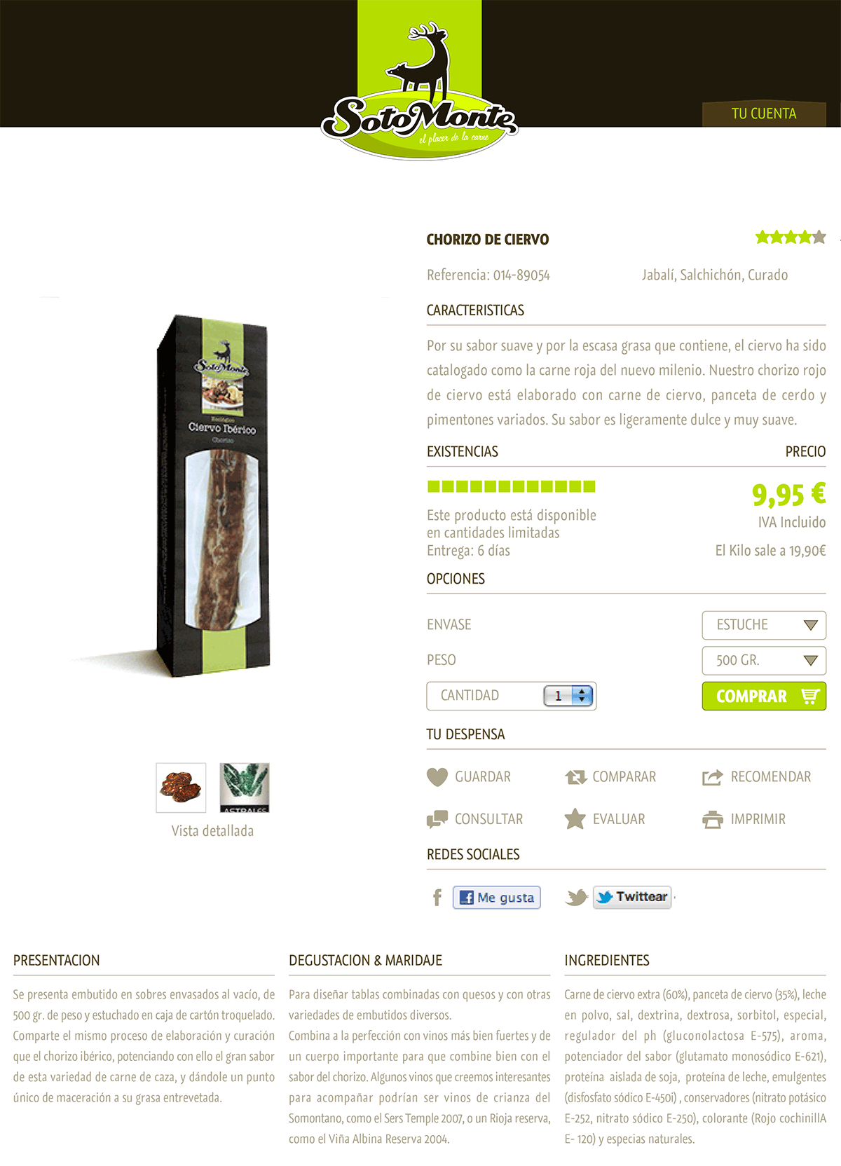 Ayudar a comercializar una marca alimentaria de embutido curado desde cero supuso para nosotros un reto. Había que buscar un nombre único, que reflejara el origen completamente natural de los productos que nuestro cliente ofrecía. El venado y el jabalí son animales casi desconocidos y el fantástico sabor de su carne curada apenas se consume en Europa. Inspirados por el hábitat en el que estos animales viven surgió Sotomonte. Una combinación perfecta de calidad y sabor que hará las delicias de los paladares más exigentes. Crear una línea de envasado para sus embutidos, que hiciese justicia a sus virtudes, rotular sus vehículos con una imagen fresca y natural y desarrollar un proyecto de comercio electrónico fueron algunas nuestras propuestas. El resultado es vistoso pero, sobre todo, muy, muy sabroso. Nosotros mismos somos consumidores de esta delicia. Una idea más que acertada.